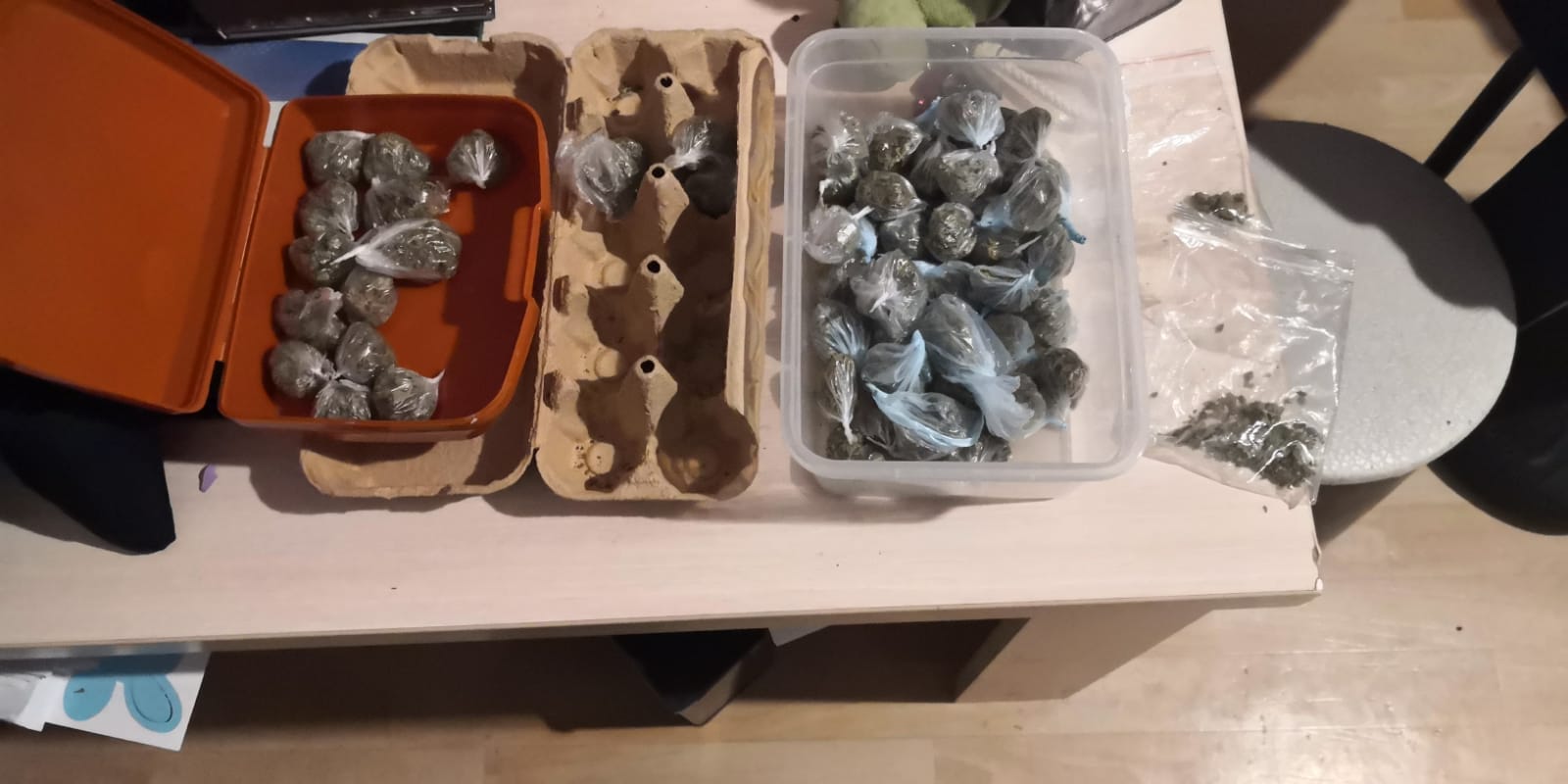Już w samym wejściu do mieszkaniu funkcjonariusze wyczuli unoszący się „zapach” marihuany. W jednym z pokoi w otworzonej szufladzie komody zauważyli małe „zawiniątko”, w którym znajdował się susz roślinny. Po przeszukaniu innych pomieszczeń funkcjonariusze znaleźli i zabezpieczyli pozostałą część suszu roślinnego, który był schowany m.in. w szufladach biurka i komody oraz w pojemnikach i wytłaczankach w lodówce.