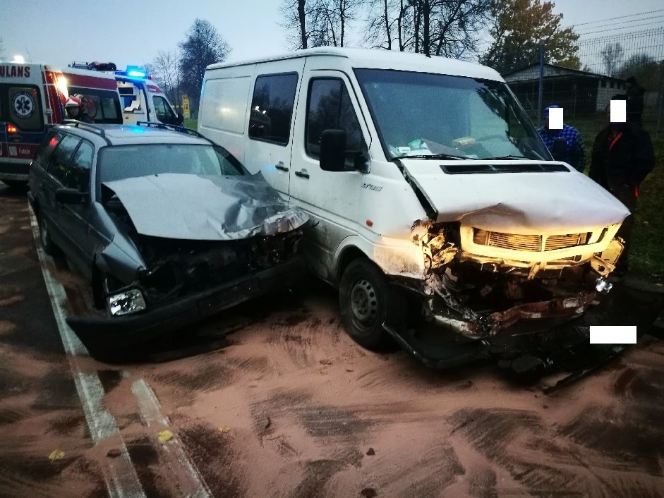 Do groźnego zdarzenia doszło dzisiaj około godziny 6.30 w Giżycku na skrzyżowaniu ulicy Moniuszki z ulicą Obwodową. Zderzył się tam pojazd osobowy z dostawczym.
