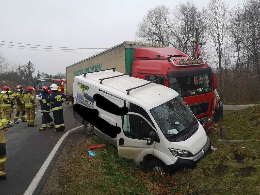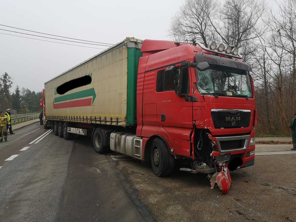 Do zderzenia tira z busem doszło dziś (17.11) rano na DK 63 w Konopkach Wielkich (gmina Miłki).