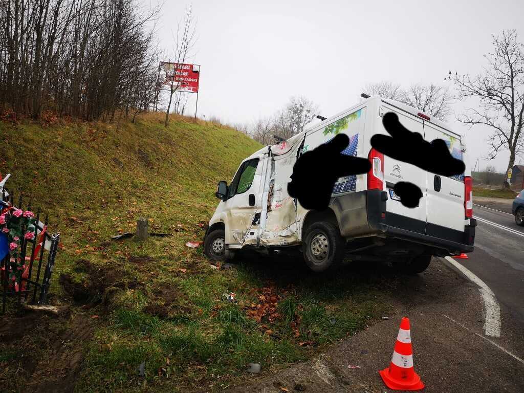 W wyniku zderzenia auta zjechały do przydrożnego rowu.