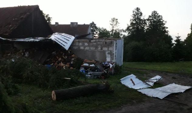 Strażacy podjęli również działania w miejscowości Sołtmany, gdzie doszło do zerwania dachu z budynku gospodarczego.