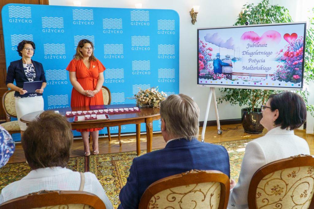 W Urzędzie Miejskim świętowano długoletnie pożycie małżeńskie wyjątkowych par. Burmistrz Giżycka Ewa Ostrowska w towarzystwie Kierownika Urzędu Stanu Cywilnego Iwony Wojciulewicz, wręczyła im w imieniu Prezydenta Andrzeja Dudy, specjalne medale.