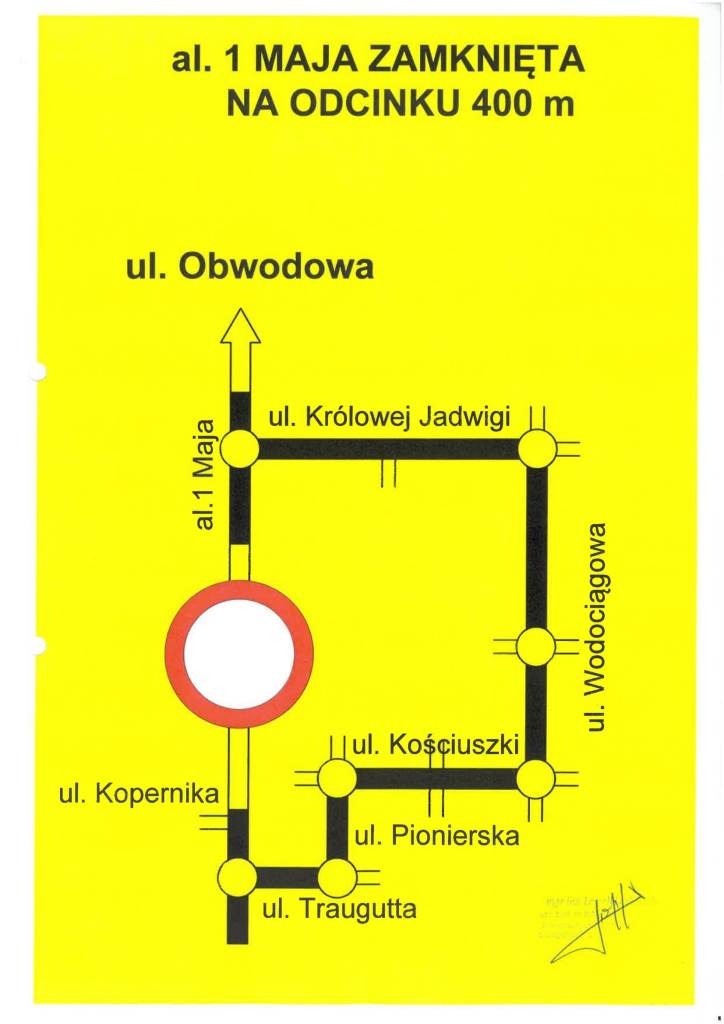 W celu umożliwienia alternatywnego dojazdu do centrum, ruch dwukierunkowy na odcinku ul. Traugutta w Giżycku (od ul. Pionierskiej do al. 1 Maja) pozostanie utrzymany na czas wykonywania robót drogowych.