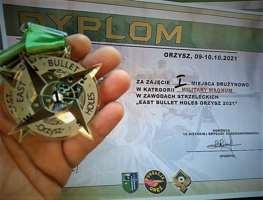 Drużyna WOT w składzie: kpr. Paweł Jastrzębski (4W-MBOT/43blp), kpr. Radosław Jurczak (4W-MBOT/41blp) zdobyła złoto w zawodach East Bullet Holes 2021 jakie miały miejsce w ubiegły weekend na poligonie w Orzyszu, rywalizując z reprezentacjami innych jednostek wojsk operacyjnych w klasie MILITARY MAGNUM (tylko dla żołnierzy) na dystansach 800m – 1000m – 1200m.